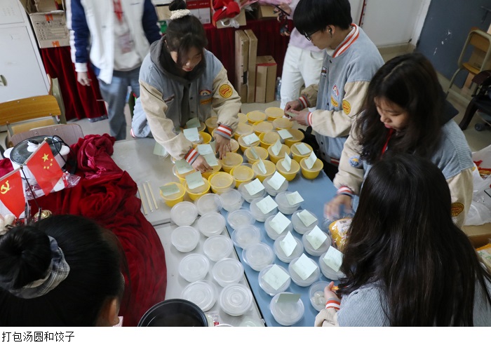 学生党支部成员准备好纸碗与食具并用心煮制汤圆与饺子,在每一盒汤圆与饺子的盖上粘贴便利贴以传达对老师的冬至问候。通过为老师们奉上一碗热腾腾的汤圆,向老师送去一份温暖和祝福,让远离家乡的老师们感受到传统节日的气氛。此次活动旨在传承传统习俗的同时为老师送来点滴温暖,感恩老师践行教书育人的使命,让老师在冬至时节感受到来自身边的温暖。