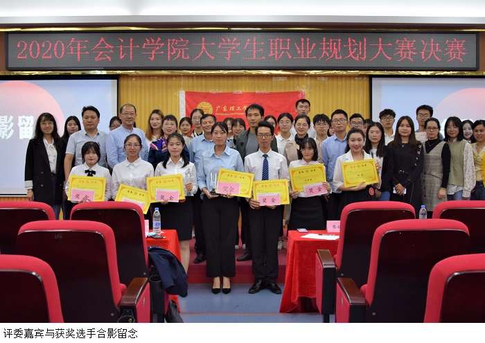 本网讯(会计学院)为了进一步引导我院学生树立正确的成才观、就业观,提升自身专业能力和职业素养。11月27日晚上,会计学院大学生职业规划大赛决赛在高要校区42101如期举行。担任本次大赛的评委有:双创学院简国明院长、教务处周红梅副处长、双创学院朱亚伟院长、双创学院王中伟老师、广东省大学生职业生涯规划大赛优秀指导老师苏旭老师。出席本次比赛的领导及嘉宾有:会计学院党总支黎伯毅书记、郑春晓副院长、党总支徐永明副书记、学生党支部郭凤玮书记、易班指导老师刘娟老师、会计学院曾景瑜老师、吕婷婷老师以及各院系学生党支部代表、会计学院易班代表、团委学生会代表、新闻中心代表。