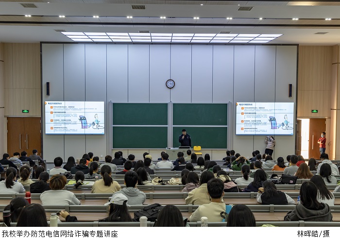 高勤警官围绕“防范电信网络诈骗”为主题进行阐述。他提到,现如今的社会,诈骗团伙犯罪形式的逐渐集团化、诈骗活动较强的蔓延性及犯罪分子反侦察能力、跨国跨境犯罪的突出行为,给公安机关的打击带来较大的困难。因此,他针对电信诈骗的九种常见形式,并结合案例分析,教导同学们受骗后应采取的措施,切勿成为“共犯”。
