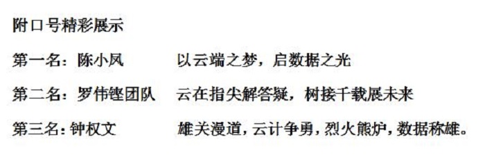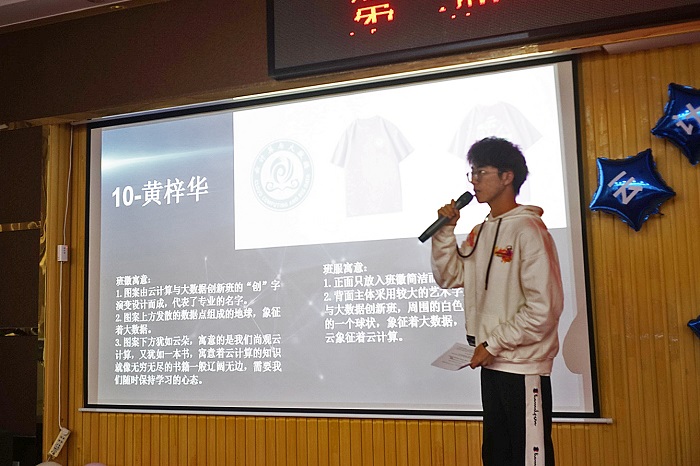 本次比赛秉承“求实学,务实业”的宗旨,培养“技术+职业人”为教育目标开展。选手们通过设计口号和班服班徽两种方式全方位彰显云计算的形象和风采。大赛中,口号组的同学信心满满,文采斐然,每一条口号背后寓意深刻,富有新意。选手们热情洋溢,在舞台上引经据典、贯古博今,用自己的语言去阐述对云计算与大数据的理解,字里行间里流露出对云计算的热爱。