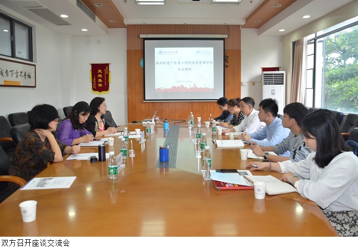 本网讯(经济管理学院)为进一步提升经济管理学院国贸专业实验室建设质量,提高本专业教学水平,11月20日,经济管理学院学科带头人陈光春教授、国贸教研室主任邓宁君带领王晓燕、龚缘等教师代表赴广东外语外贸大学交流学习,受到贵校经济贸易学院副院长唐静教授、国际贸易系主任许月丽教授、国际合作项目主任陈琳副教授等领导的热情接待。