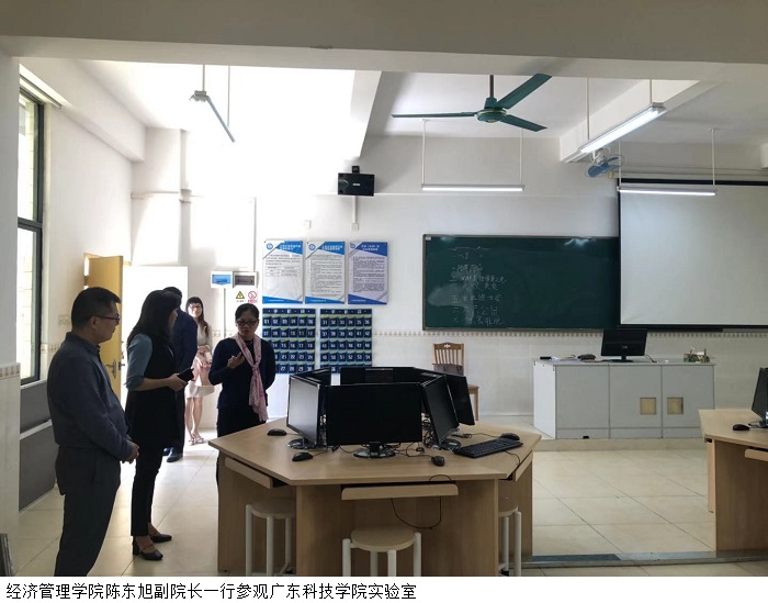 在广东科技学院,谈院长向经济管理学院交流团队详细介绍了广东科技学院管理学院概况、师资队伍、实验室建设和学科特色。陈副院长就建设跨境电商实验室,包括实验室功能及建设规划思路、实验室主要软硬件配备和投资及主要供应商、实验室的使用及运作等问题,与谈院长及电子商务专业老师展开热烈讨论。最后,双方就跨境电商领域的人才培养与培训、课题研究、促进大学生创新创业等内容先后发表看法,分享经验。