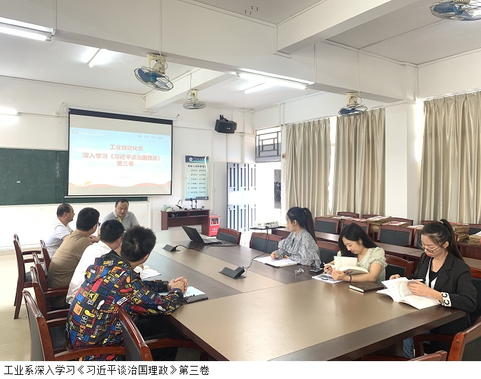 本网讯(工业系)11月2日上午,工业系党总支在9304会议室,深入学习《习近平谈治国理政》第三卷。工业系党总支苏庚华副书记、教工党支部杨斌书记和党员教工共同学习。