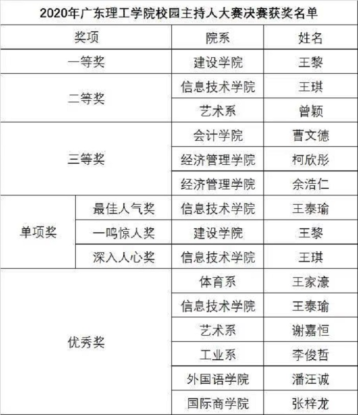 本网讯(校团委)11月10日晚,由共青团beat365在线唯一官网委员会主办,校广播站承办的2020年beat365在线唯一官网“持骋梦想,话统青春”校园主持人大赛决赛于高要校区礼堂圆满落幕。