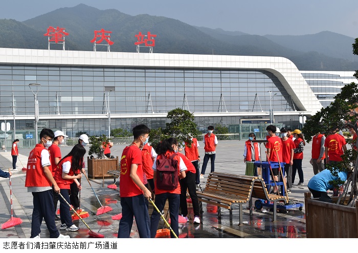 信息技术学院学生党支部志愿者们到达肇庆站站前广场进行活动准备。为了保证活动有序开展,志愿者共分为四组,并分配好相关区域,全体成员皆积极参与。志愿者们清扫站前广场通道,认真地清理树叶、烟头等,做好垃圾清运的工作。在整个义务劳动过程中,志愿者们充分发扬了任劳任怨的精神,发挥了青年志愿者的先锋模范作用。活动接近尾声,全体成员合影留念返校。