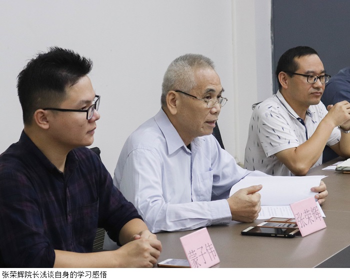 张荣辉院长浅谈自身的学习感悟。张院长以高校教师失师德的案例为引,提醒与会教师,应不断完善自身师德修养,注意自身言论问题,紧跟党的方向。紧接着张院长再次强调文件内容细节问题与教师学术道德问题,总结教师感言,表示教师队伍应做到心中有师德,言行守师德。