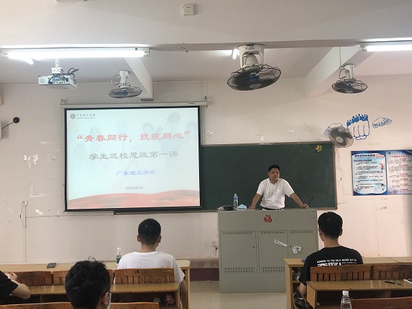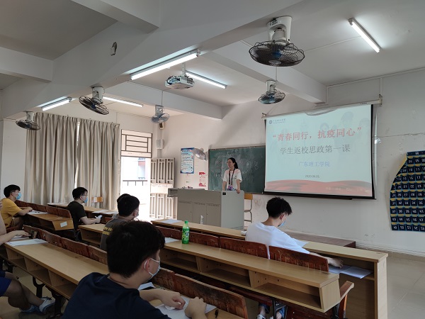在课堂上,梁星全书记和辅导员们分别对不同班级的同学们进行新型冠状病毒知识培训,让同学们更加科学地、全面地了解新型冠状病毒。培训过后,同学们观看中国逆行者们的抗疫事迹,抗疫英雄们“舍小家为大家”“不忘初心,牢记使命”的精神把课堂气氛推向了高潮。同学们也明白了“青春同行,抗疫同心”的含义。普及完新冠肺炎知识后,辅导员们明确地告知学生返校复学工作安排和校园常态化的疫情防控工作,例如:错峰就餐、宿舍清洁、体温上报制度、校园封闭式管理等。辅导员们也一再叮嘱同学们无论身处何处都务必遵守“戴口罩、不逗留、不聚集、一米距”的原则。