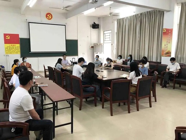 本网讯(外国语学院 新闻中心)为了更好的推进疫情期间学生返校工作,确保学生的安全,外国语学院于5月22日下午,在37栋101召开工作会议。本次会议由外国语学院党总支李永青书记主持,外国语学院首批返校班级全体班主任出席。