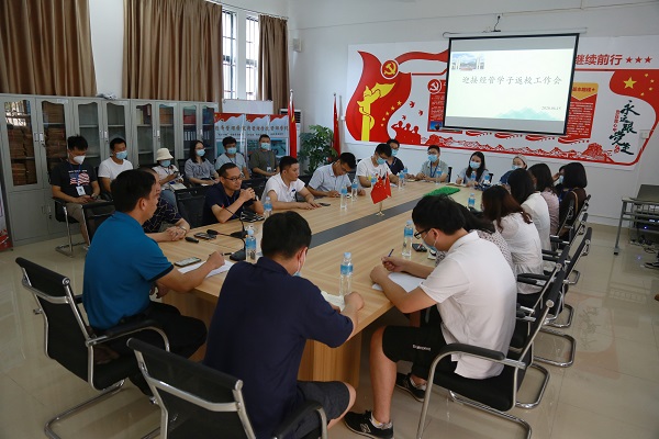 本网讯(经济管理学院)为落实经济管理学院学生返校工作,确保首批学生安全、平稳、有序地返校。6月15日上午,经管学院在鼎湖校区4103党员活动室召开首批学生返校工作部署会议。学校党委黎会友副书记、学生处欧阳德科长、建设学院党总支周景报书记、焦根平副书记、经管学院党总支甘怀南书记、吴楚升副书记及两个学院的辅导员出席会议。