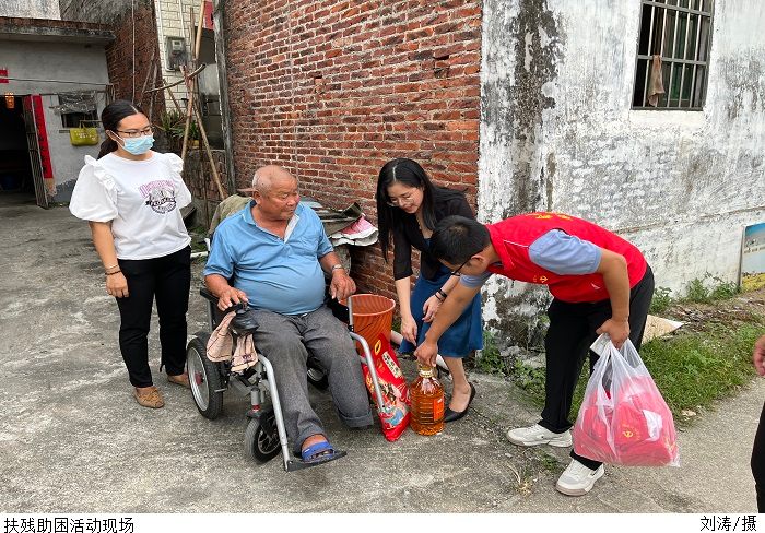 活动现场,黎伯毅等人在当地村委工作人员引导下到困难残疾人家中进行慰问。询问残疾家庭的生活情况,向他们宣传相关扶持政策,并为他们送上了米、食用油等慰问物资,鼓励他们要积极乐观,勇敢的面对生活困难。通过本次的助残行动,让困难残疾人士感受到了社会的温暖和关爱,同时也彰显了我院党员师生社会意识和社会责任感。