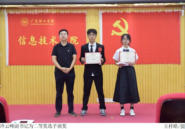 活动伊始,主持人宣布比赛正式开始并宣讲比赛规则。全体人员起立面向国旗,奏唱国歌。参赛选手依次上场进行演讲,以第一人称讲故事、举例子等多种方式展开演讲,演讲契合主题,内容创新多样而又紧贴生活时事。现场观众认真聆听,评委根据比赛规则中的评分标准为每位参赛选手的表现打出分数。比赛过程中,为活跃气氛还穿插了互动提问环节。随后由学生党支部书记胡娇铃老师宣布班级黑板报获奖名单并颁发奖状。工作人员在综合诸位评委的分数后,老师为获奖选手颁奖并合照留念。最后,梁星全对此次决赛进行总结,他希望当代青年能学以致用,将遵纪、守法、修德的观念铭记于心,内化于行,争做新时代的奋斗先锋。