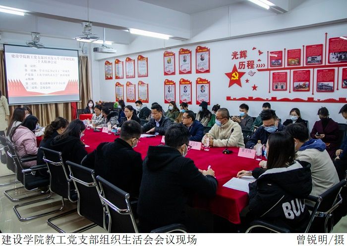 本网讯(建设学院教工党支部)12月6日下午,建设学院教工党支部在3210党员活动室召开组织生活会。校党委副书记黎会友出席会议并发表讲话,学院党总支书记周景报、副院长史会全、副院长蒙子伟、党总支副书记焦根平、党支部书记李文及全体党员教师参加会议。