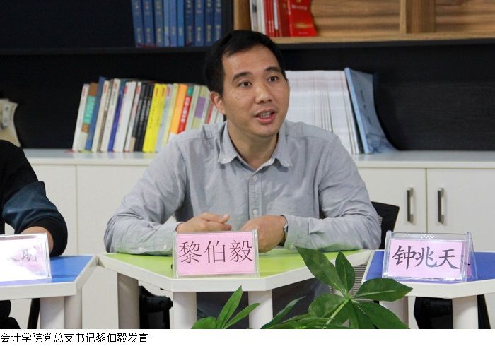 会计学院党总支书记黎伯毅围绕“走进工作案例,践行育人使命”主题,对“新时代高校辅导员队伍建设和管理”作出专题分享,他表示作为新时代的辅导员,我们要做好大学生健康成长的指导者和引路人。