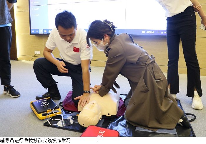 理论授课结束后,肇庆市紧急医学救援队的队员们带领全体辅导员进行急救技能实践操作。辅导员们在医护人员的指导下,分组利用急救模拟人开展心脏按压、人工呼吸等心肺复苏模拟操作。