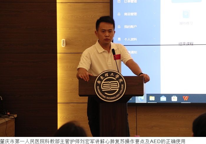 肇庆市第一人民医院科教部主管护师刘宏军结合教学视频详细讲解了心肺复苏的操作要点及自动体外除颤仪(AED)的正确使用。