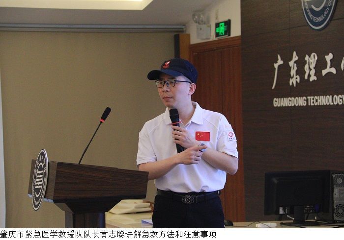 肇庆市第一人民医院急诊科副主任、肇庆市紧急医学救援队队长黄志聪围绕急救的意义和原则,结合生动案例,为大家讲解了心脏骤停及气道异物梗阻的急救方法和注意事项。