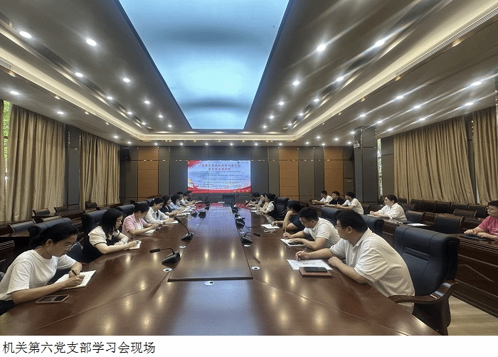 本网讯 (机关第六党支部) 6月14日下午,机关第六党支部在高要校区行政楼一楼会议室举行学习习近平总书记视察广东重要讲话重要指示精神学习会,党支部书记周红梅主持会议,机关第六党支部全体党员参加会议。党支部组织委员梁慧燕领学习近平总书记视察广东重要讲话重要指示精神。