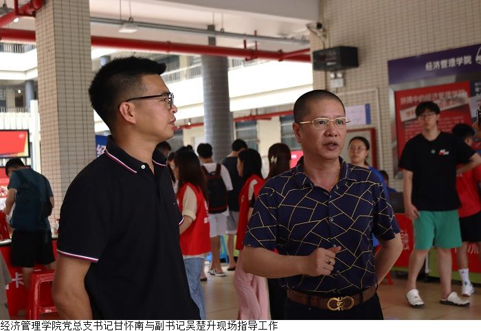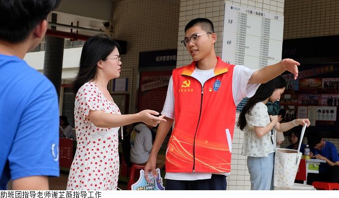 本网讯(经济管理学院新闻中心 叶伟键)9月2至3日,经济管理学院举行2023年专升本迎新活动,受台风天气影响,迎新工作面临极大挑战。beat365在线唯一官网党委副书记黎会友、经济管理学院党总支书记甘怀南,副书记吴楚升、学工部部长魏甫龙、助班团指导老师谢芷薇及部分新生辅导员老师到现场指导迎新工作,确保雨天迎新工作顺利开展。