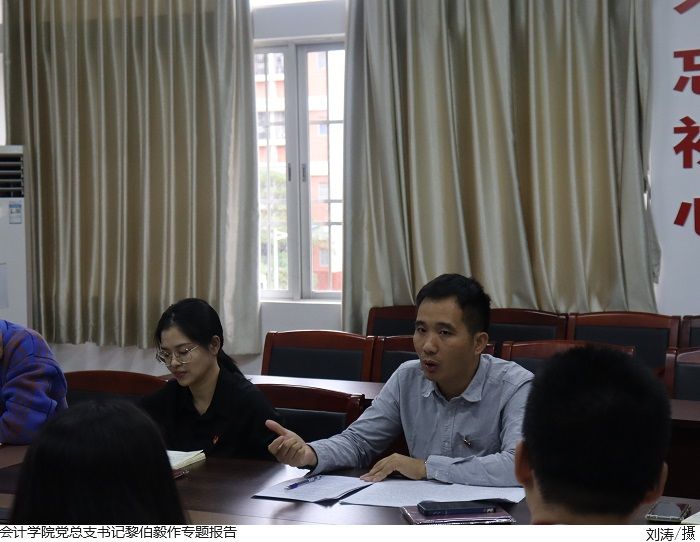 本网讯(会计学院新闻中心 黄慧坚)为学习贯彻习近平总书记视察广东重要讲话精神,强化党员队伍建设,推进党务工作发展。10月10日,会计学院于7303会议室召开教工党支部大会。会计学院党总支书记黎伯毅、教工党支部书记郑春晓以及全体党员教师参会。