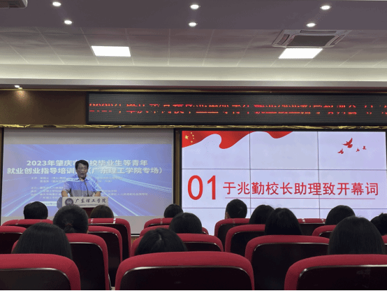 最后,肇庆市高校毕业生就业指导中心主任曾凌芳就国家就业创业政策进行了解读,同时对同学们进行了爱国主义教育、肇庆市情教育、就业先进典型宣介,鼓励大家青春恰似火,扬帆正当时!最后曾凌芳主任为有备考公务员的同学分享了学习方法和切实可行的技巧。