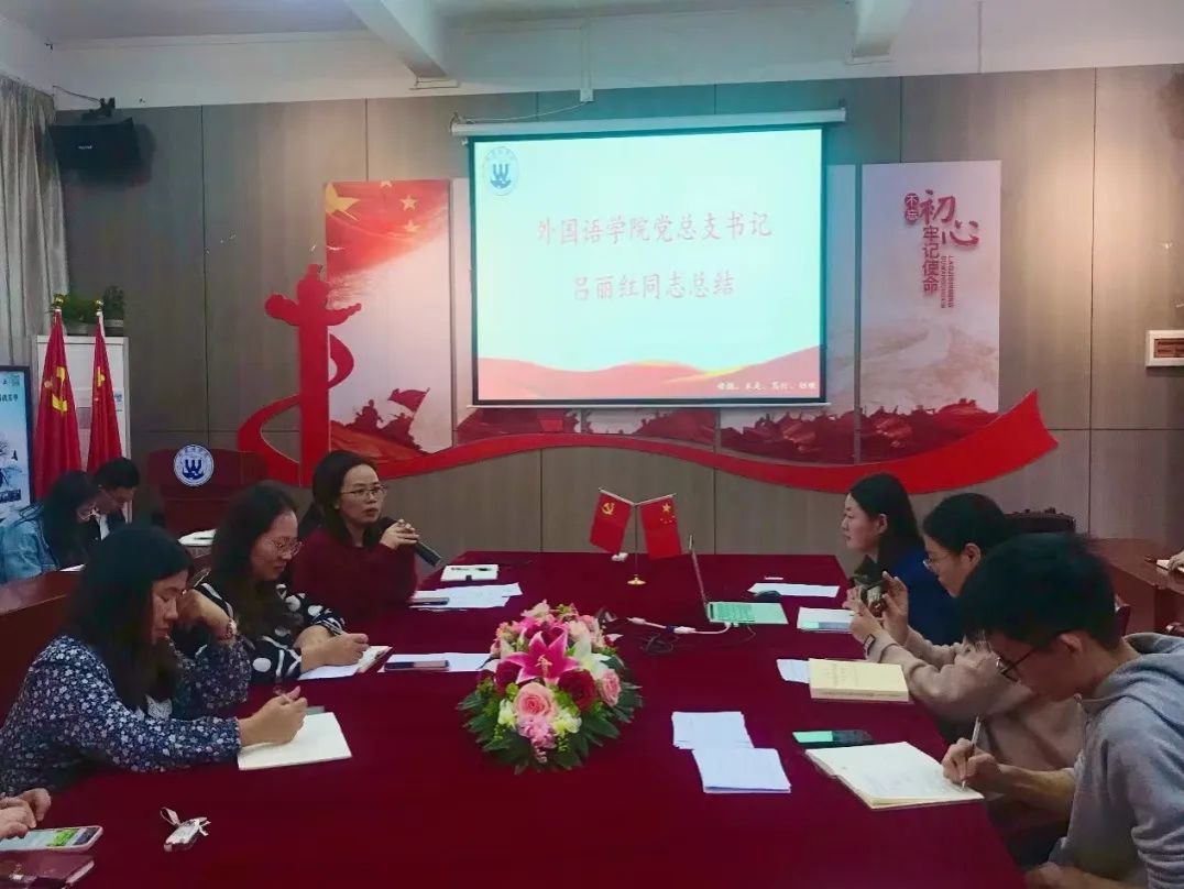 本网讯(外国语学院融媒体中心)为推动学习贯彻习近平新时代中国特色社会主义思想主题教育走深走实,外国语学院教工第一党支部于11月30日在37101会议室开展“主题教育专题学习会”,本次会议由教工第一党支部副书记葛银凤主讲,支部教工党员参与会议。
