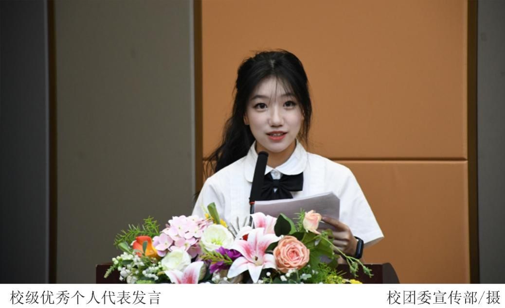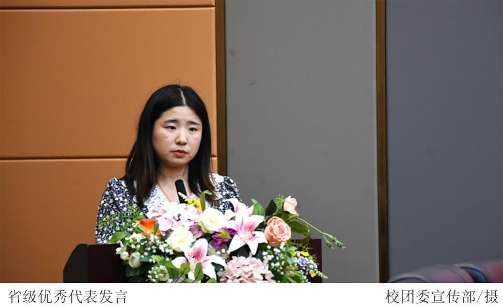 省级优秀个人外国语学院党总支副书记吕媛和校级优秀个人卢家儿同学作代表发言,她们表示,通过“三下乡”活动,深刻体会到青年力量对建设乡村,服务基层的意义重大,也更进一步明确了青年人的责任与使命。并向大家分享了自己实践队下乡经验,提出教育不只局限在课堂上,更需要走出校园、走进乡村,用自身行动去助力乡村的发展与振兴,鼓励在场的老师与同学们积极融入基层,了解基层,共同书写乡村振兴的新华章!