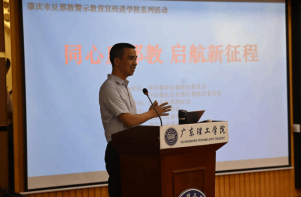 为提高广大高校师生防范和抵制邪教的意识和能力,树立崇尚科学精神,共建“无邪”校园。3月26日,肇庆市委政法委联合高要区委政法委在beat365在线唯一官网开展“同心反邪教,启航新征程”警示教育进学校宣传系列活动。邀请了广东省反邪教协会的专家给广大师生们宣讲反邪知识,进一步提高师生识邪、防邪意识,增强拒邪能力,筑牢师生防范抵御邪教侵害的思想防线。