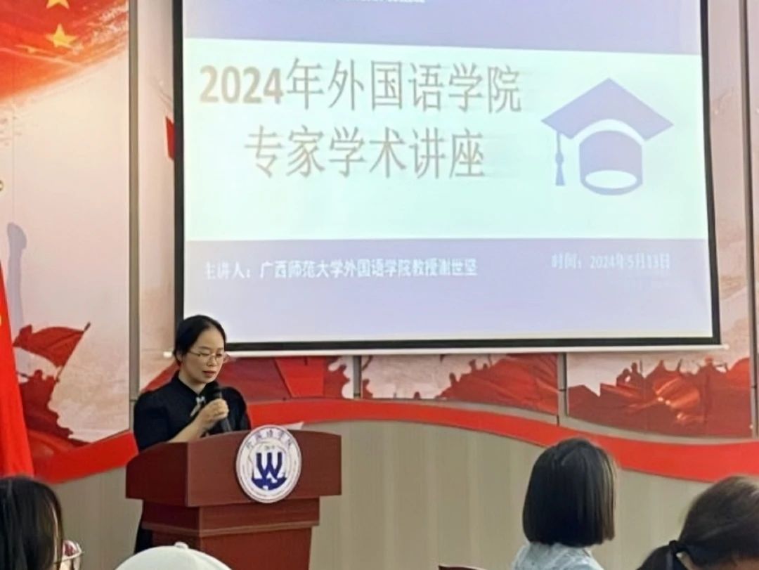 本网讯(外国语学院融媒体中心)为进一步提升外国语学院教师跨文化教育教学能力,深入推进本院课程思政、一流课程及专业建设,5月13日下午,外国语学院邀请北京外国语大学文学博士,原广西师范大学外国语学院院长谢世坚教授,在37101会议室开展了“新形势下外语教师跨文化教学能力的思考”主题讲座。参与本次讲座的有外国语学院院长吕丽红,副院长王泽熙、黄庆斌以及广大外院教师。