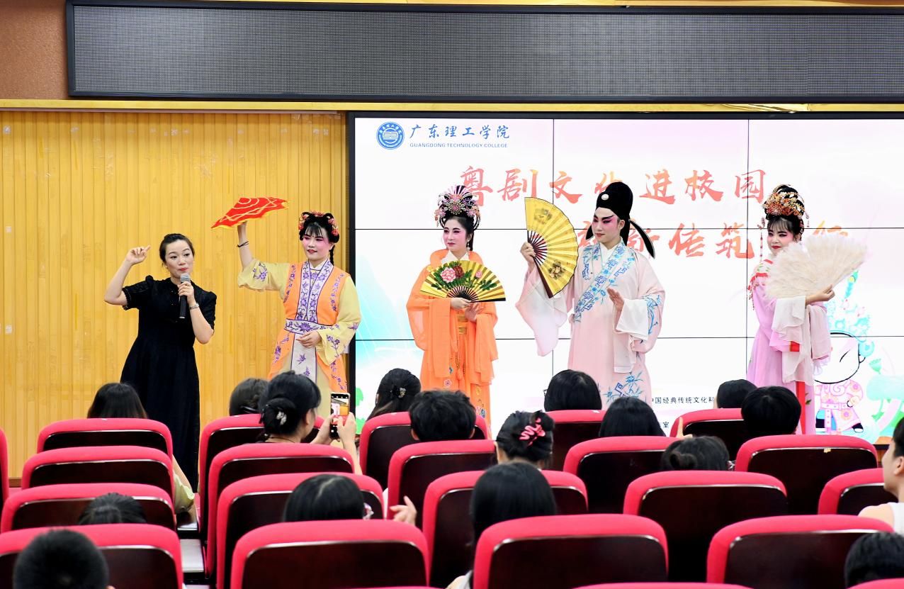 活动现场,来自肇庆市粤剧团的演员们为师生们带来了一场精彩纷呈的粤剧盛宴。广东戏剧家协会会员、肇庆市戏剧家协会理事、优秀青年花旦陆明霞作为主讲人,深入浅出地介绍了粤剧的历史沿革、表演技巧和艺术特色,使师生们对粤剧有了更全面的认识。