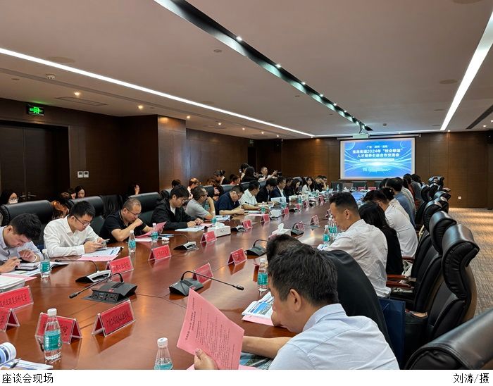 座谈会上,宝龙街道办事处副主任张剑对与会的院校及企业代表表示热烈欢迎,并介绍了龙岗区高新科技与高端服务等优势产业情况。
