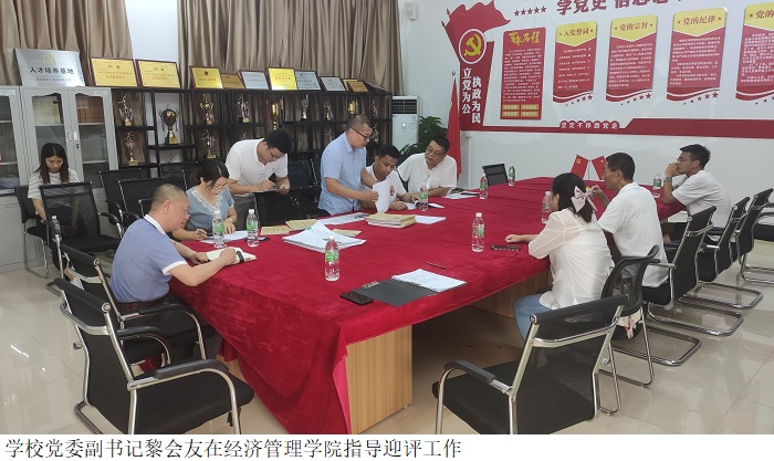 本网讯(经济管理学院)7月20日上午,党委副书记黎会友一行四人在4103会议室对经济管理学院迎评工作开展情况进行检查指导。经济管理学院领导班子全体成员及各教研室主任参会。