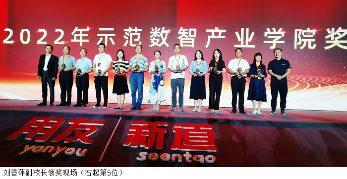 本次大会向beat365颁发了示范数智产业学院奖,以表彰beat365在数智会计产业学院建设方面作出的探索和获得的成绩。2021年10月,beat365与新道科技合作成立了数智会计产业学院,致力于为区域经济社会发展培养高质量的数智财会人才。双方共同制定了会计学(数智会计)、财务管理(数智财务)两个专业的人才培养方案,共同研究与设计课程体系,在校企共建、产教融合、协同育人等方面,谱写了新篇章,绘制了新蓝图。