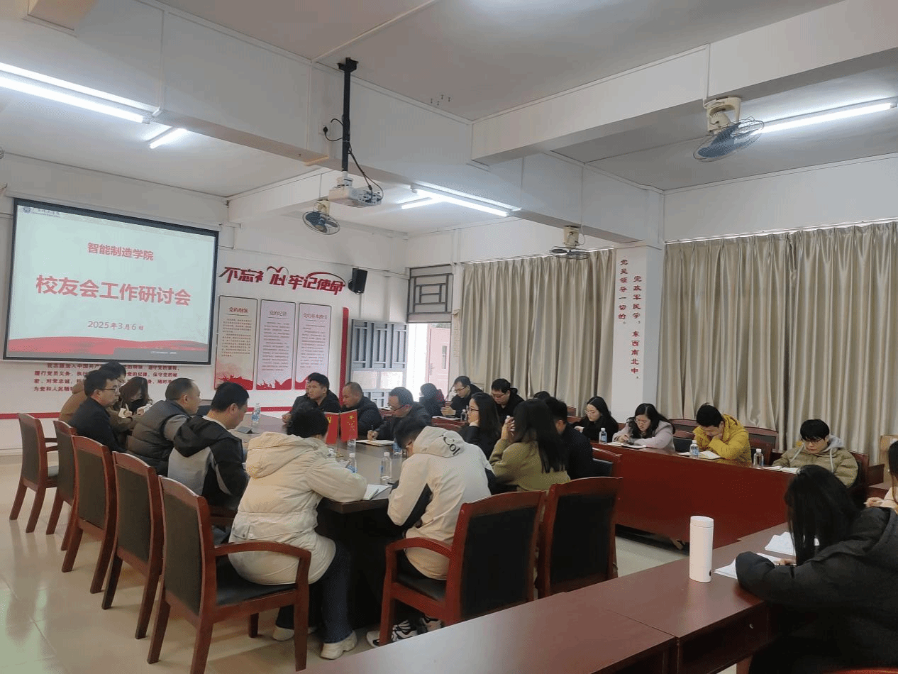 会议由智能制造学院党总支书记彭清林主持。就业办李相平主任携丁明健、张恬也、王红涛、黎颖怡等骨干成员出席,智能制造学院党总支副书记苏庚华及全体辅导员参会。会议立足智能制造学科特色与区域产业需求,探索校友会赋能学院高质量发展的创新路径。