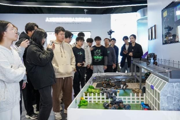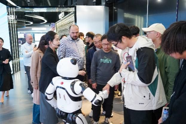 活动首日,师生们抵达深圳,首先参观了优必选展厅,正式开启了智能机器人产业探索之旅。在这里,同学们与优必选的人形机器人“熊猫”进行握手互动,全方位体验了智能机器人在商用服务、物流、康养、教育等领域的最新技术突破与实际应用案例。