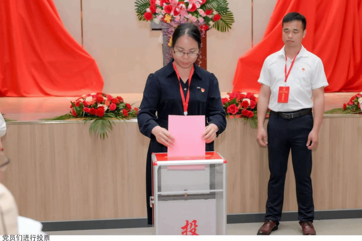 紧接着,大会进入了紧张而有序的第一届党委委员选举环节。按照选举程序,大会首先审议通过了选举办法和监票人、计票人名单。推选了林潘能为总监票人,黄科锜、吴秋萍为监票人,陈钦腾、付龙、梁华成、李卓荣为计票人。师生党员在认真听完候选人的基本情况介绍后,郑重填写选票并依次投票,充分行使自己的民主权利。