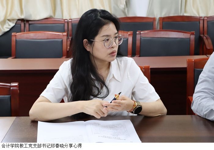 随后,徐永明分享学习心得,他讲到全院党员师生要提升认识、坚定站位,明确深入贯彻中央八项规定精神学习教育的重大意义。郑春晓在分享中提到,深入贯彻中央八项规定精神学习教育,是拥护“两个确立”的忠诚考验,是巩固党的执政根基的必然要求,是推进中国式现代化的有力保障。要把开展学习教育同落实党中央重大决策部署、有效推动学院中心工作发展紧密结合起来,确保学习教育取得实实在在的成效。