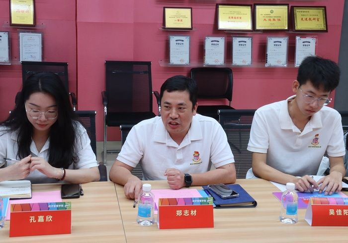 随后,我院魏主任带来学院学生工作的情况汇报。他系统介绍了各个组织的架构与职能,突出学生自主管理、自我成长成效。同时,他也重点阐述了企业见习及访企拓岗成果,依托校企合作平台为学生提供多元实习机会。最后,他表述可以通过考研指导讲座助力升学规划,以志愿服务推动社会责任感培养,多措并举深化学风建设。