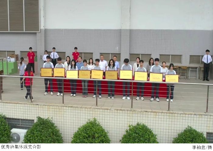 升旗仪式现场,学院为表现优异、获评优秀班集体的班级颁发了荣誉奖章。