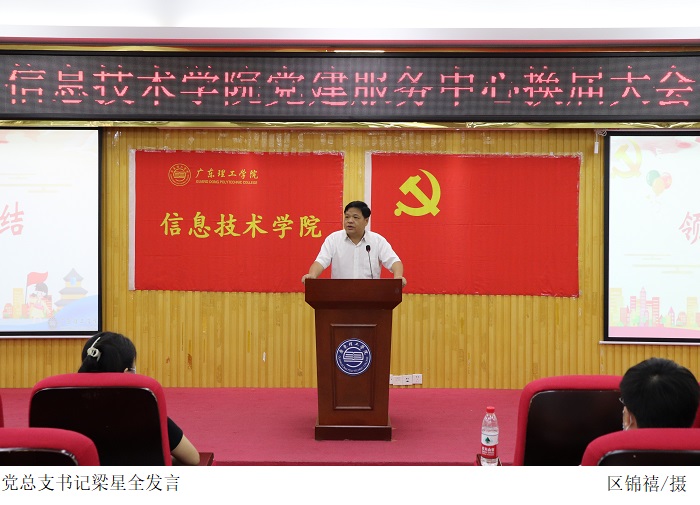 本网讯(信息技术学院 杨志坚 邓愿)6月21日下午,信息技术学院党建服务中心在42101会议厅举行换届大会,党总支书记梁星全、学院全体辅导员出席。