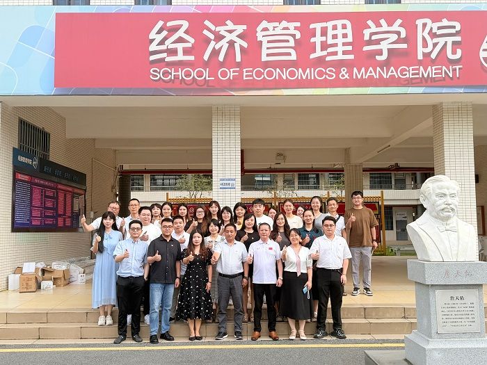 本网讯(经济管理学院 阮豪胜、谭欣颖)2025年7月11日,经济管理学院召开新任党委班子任职见面会。学校党委副书记张宗珊、原学院党委书记甘怀南(现智能制造学院党委书记)、新任学院党委副书记吕媛、魏甫龙、学院院长赵燕、副院长伦肇亮及各教研室主任、全体辅导员出席会议。会议由学院副院长黎传熙主持。