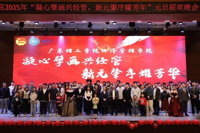 晚会以经管团委、学生会的舞龙表演开场,迅速点燃现场氛围。随后,黎会友副书记致辞,寄语师生新岁奋发;学院院长赵燕、党委副书记吕媛分别总结教学、党建与学风建设工作,明晰未来方向。