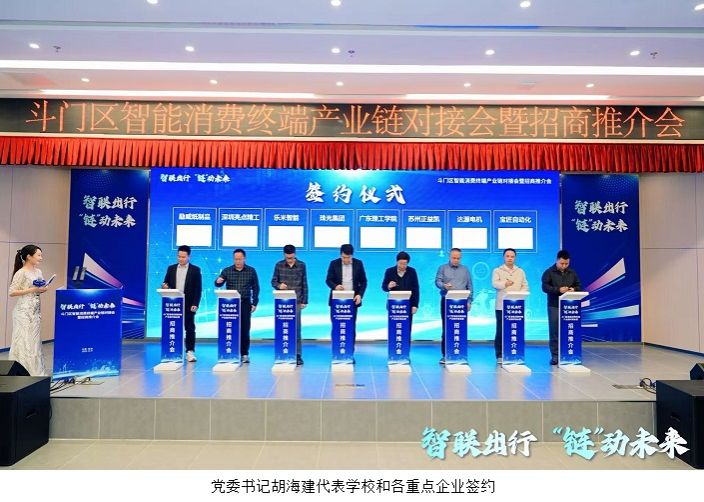 本网讯(就业指导中心)12月19日,以“智联出行,‘链’动未来”为主题的斗门区智能消费终端产业链对接会暨招商推介会在珠海市斗门区,beat365在线唯一官网党委书记胡海建率队出席,与斗门区政府、行业协会、龙头企业代表齐聚一堂,围绕智能消费终端产业 “链” 接、产教融合协同发展展开深度交流,推动校地、校企资源深度对接与合作落地。