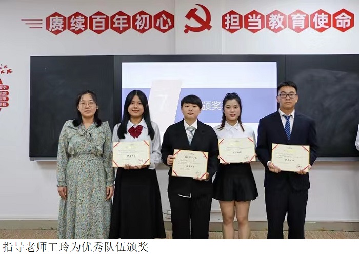 此次比赛的亮点不仅在于辩手们精彩的比拼,还体现在观众答题及评委的点评环节。在严谨的评分标准下,评出了冠、亚、季、优四支获奖队伍及两名最佳辩手。李佩琼院长、陈美旭老师、庞明明老师、王玲老师、魏林林老师为获奖代表颁奖。