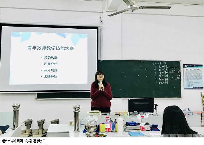 盛洁为本次比赛致辞,她表示,希望青年教师通过教学技能比赛不断改进教学方式,提高教学水平。