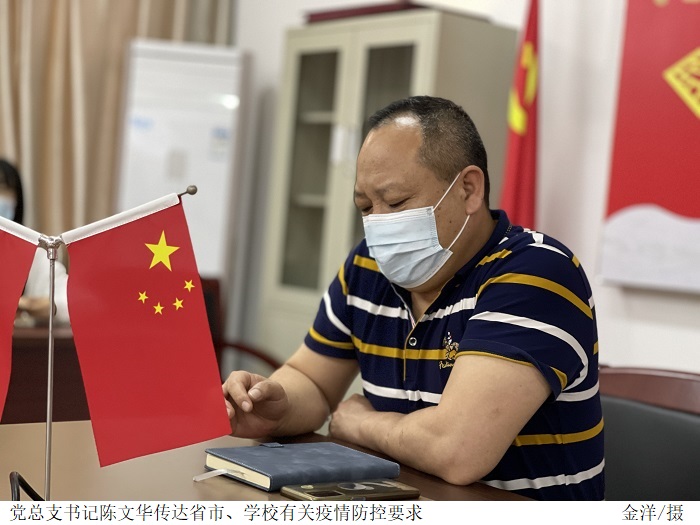 党总支书记陈文华首先带领全体党员学习了习近平总书记关于疫情防控工作的重要讲话精神,强调全体教工党员要认真学习贯彻习近平总书记重要讲话精神、重要指示批示精神,进一步增强政治责任感和紧迫感,牢固树立一盘棋思想,坚决扛起疫情防控重大政治责任,坚决打赢疫情防控阻击战。
