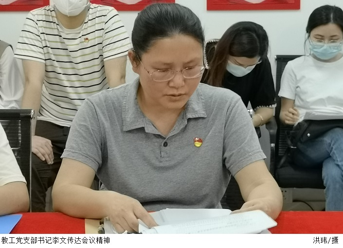 教工党支部书记李文传达了全国政协十三届五次会议精神,强调教工党支部应以习近平新时代中国特色社会主义思想为指导,继续深入开展以中共党史为重点的“四史”教育,进一步增强党员教师的政治自觉、思想自觉、行动自觉。