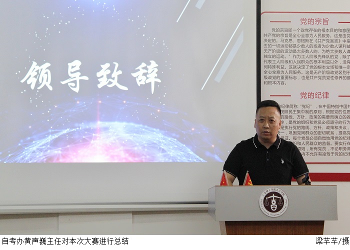 赛后,黄声巍作总结发言,对参赛选手的创新创业热情表示赞扬,他建议各位同学在写商业计划书时能与专业知识相结合,做一些力所能及的项目;最后他提出创业最重要的要先有见识,再是学识,以国美电器黄光裕的故事,引出“见识决定能否抢占先机,学识决定能否走的长久”。最后他祝愿会计学院的学子在接下来的校赛中获得佳绩。