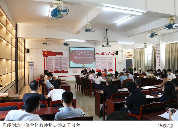 本网讯(智能制造学院 李树成)4月12日下午,智能制造学院党总支在9304会议室召开全国“两会”精神专题学习会。会议由党总支书记彭清林主持,院长伍先明、副院长谢娟烘、黎志勇、党总支副书记苏庚华及全体党员教师参会。