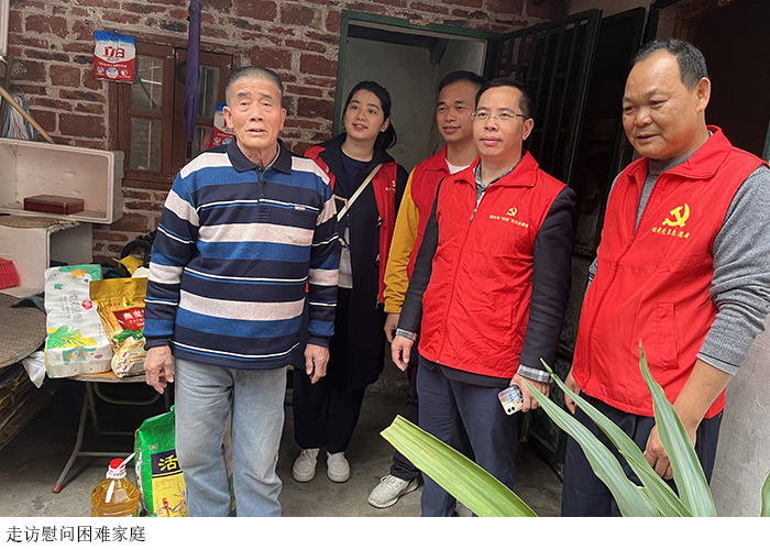 下午三时,在蕉园社区工作人员的陪同下,机关第四党支部全体人员分别走访看望了社区内的低保户及部分困难群众家庭,在这个寒冷的冬日给他们送上慰问品和温暖的问候,关心他们的生活情况和身体状况。
