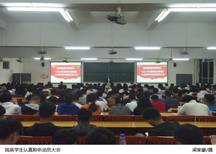 本网讯(智能制造学院 但志慧)为进一步提升大学生的创新意识和科研能力,引导他们积极加入院系组建的创新团队,激发他们参加学科竞赛、创新创业等活动的热情,智能制造学院于1月5日晚在42栋422举办“2022年度师生创新团队暨学科竞赛“动员大会。校长助理于兆勤、智能制造学院院长伍先明、副院长黎志勇出席,各创新团队指导教师、辅导员以及院系学生参加,党总支副书记苏庚华主持。